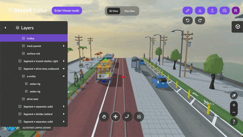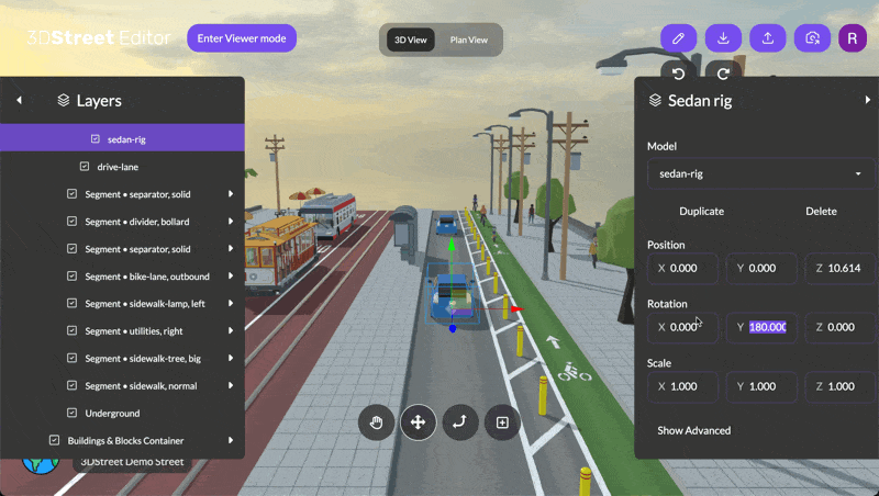 3DStreet has powerful editing capabilities. You can move, rotate, and resize objects, as well as change their type and add advanced properties. You can also duplicate, add, and delete objects.